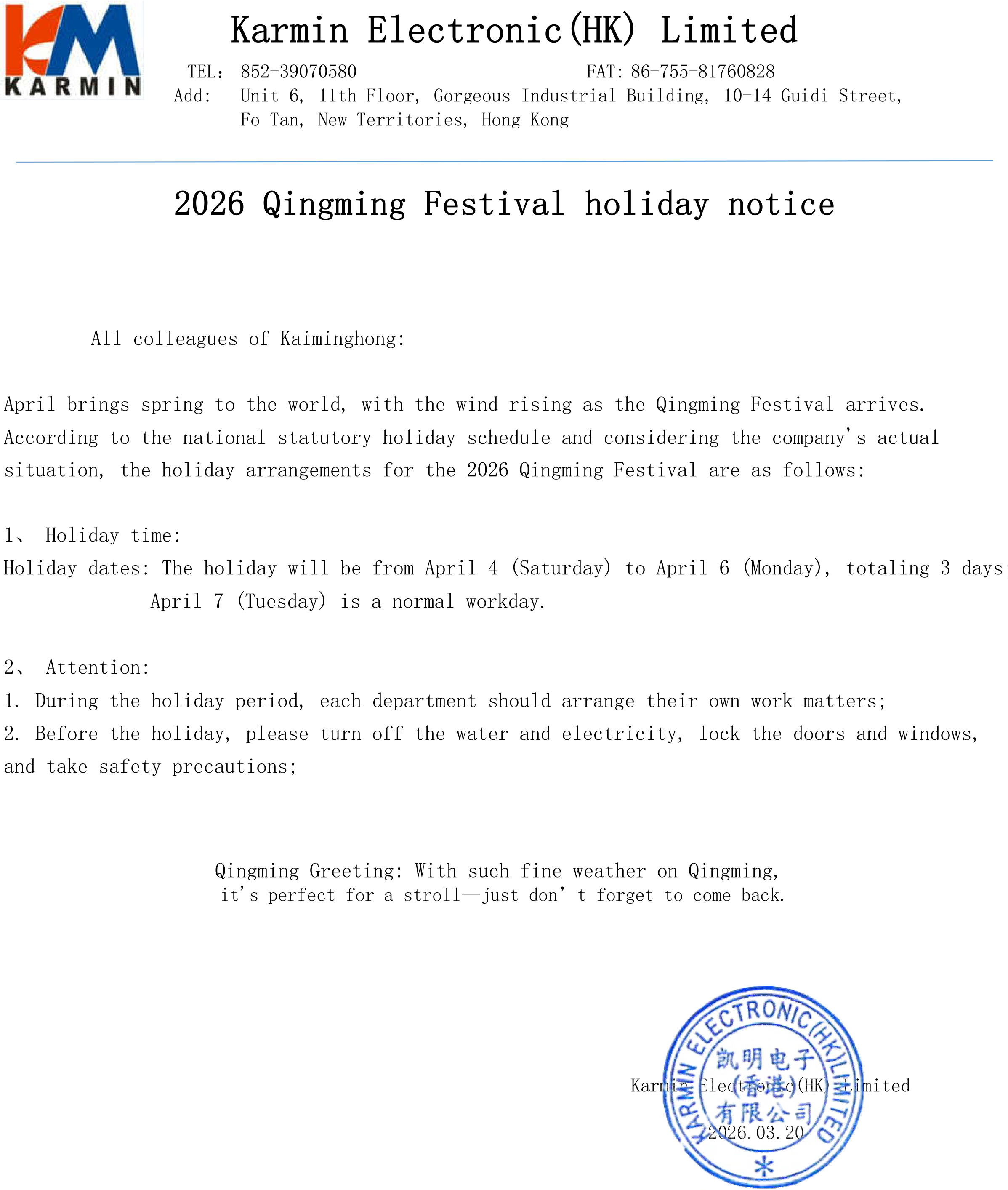 Qingming Festival holiday notice