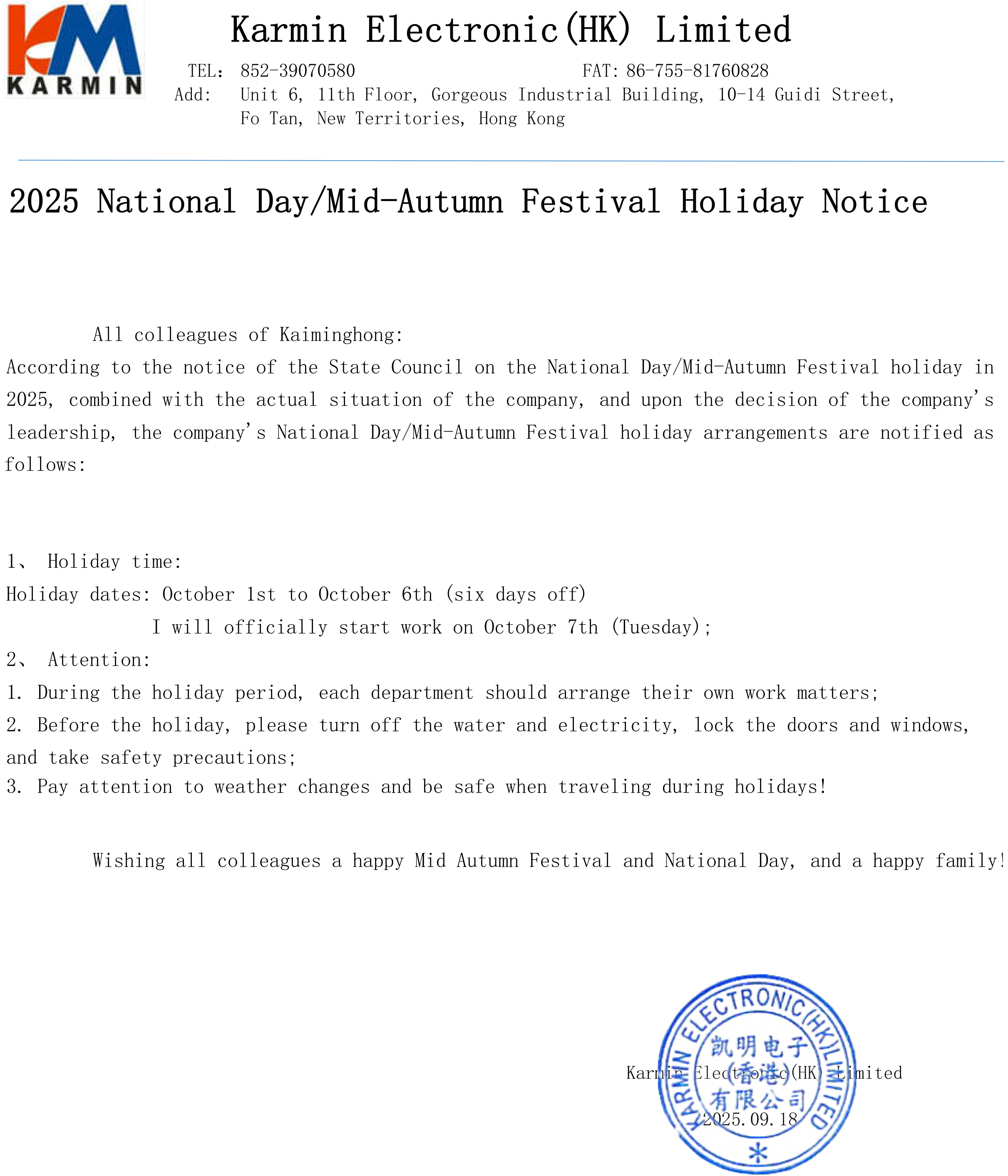 2025 National Day/Mid-Autumn Festival Holiday Notice